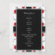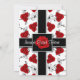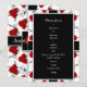 Un diseño rico, elegante y atemporal de rosas rojas rubí en racimos de tres, colocado sobre un fondo blanco con bocetos de margaritas negras. La invitación está envuelta con una cinta negra recortada con blanco y tiene un centro cuadrado en negro y blanco que tiene una sola rosa roja floral en él. Esta invitación es adecuada para cualquier evento femenino, ocasión o reunión especial que su empresa pueda estar organizando para celebrar a la mujer. También es ideal para cualquier función de primavera, campo, aire libre o verano que esté planeando, ya sea un desayuno, almuerzo o cena. Si está involucrado en la industria de la hospitalidad o entretenimiento, esto es ideal. POR FAVOR, TOME NOTA: Este menú es personalizable. Para personalizarlo, haga clic en el enlace "personalizar" en esta página. Siéntase libre de agregar su propia redacción, cambiar el color, estilo y tamaño de la fuente y incluso cambiar el tamaño, reposicionar o reemplazar el diseño con uno propio. Si elimina alguna de las filas, para asegurarse de que estén correctamente alineadas, haga clic en el diseño en la mitad izquierda de la página y