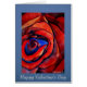Perfecto para El día de San Valentín con diseño de arte original de la pintura acuarela de Sacha Grossel de gran enfoque, macro estilo rosa rojo con resaltes azules. Esta flor inglesa tradicional con pétalos crimson tiene un diseño de color intenso y brillante que transmite la abstracción de la forma botánica y los temas del amor y la pasión.