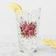 Este vaso tiene rosas rosas rosas y hojas doradas. Está impreso en ambos lados.