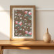 Un patrón de tela vintage con arreglos florales extravagantes. Los ramos de rosas rosas y violetas con hojas verdes tiernas sobre fondo marrón chocolate