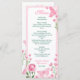 El diseño de este menú de la fiesta de 15 años de la quinceañera rosada luce rosas dibujados a mano, flores y mariposas. En la parte de atrás del diseño hay un ilustracion de un chica en un vestido de bata con mariposas volando sobre ella y flores alrededor de ella. Puede personalizar de todo el menú y de todo el texto adicional delante y atrás. Vea toda la colección coincidente. Todas las obras de arte son dibujadas digitalmente a mano por Kaitlyn Thomas ©.
