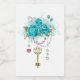 Llave de oro antiguo con rosas turquesa de moda decorados con hojas de oro blanco y cuentas rosas y azules. Color de moda. Rosas turquesas. Oro blanco. Tifanía azul.