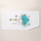 Llave de oro antiguo con rosas turquesa de moda decorados con hojas de oro blanco y cuentas rosas y azules. Color de moda. Rosas turquesas. Oro blanco. Tifanía azul.