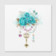 Llave de oro antiguo con rosas turquesa de moda decorados con hojas de oro blanco y cuentas rosas y azules. Color de moda. Rosas turquesas. Oro blanco. Tifanía azul.