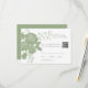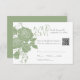 Una versátil tarjeta RSVP, los huéspedes pueden escanear el código QR, o rellenar y enviarle un correo. Dos lados y con rosas en un diseño Subió de color Sage Green. Parte de la colección de Bodas de rosas blancas. Disponible en 7 colores.