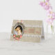 Diseño nostálgico con fondo floral de color crudo suavemente grabado en relieve con cintas y encajes crudos y rosas, rosas de color y pintura vintage de madre e hijo en un marco adornado de plata tallada con saludo de tipo victoriano rosa.
