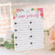 Diseñada para combinar con nuestras invitaciones de boda de cata de vino de Rosé Garden, las tarjetas presentan flores de acuarela vibrantes y coloridas con dos copas de vino brindando en la parte superior y "tarjeta de puntuación de vino" en escritura a mano rosa. Espacio debajo para notas de cata y calificaciones en ocho vinos.