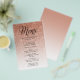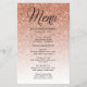 This trendy rose gold ombre glitter party menu features faux sparkly glitter and a fancy script typography heading. Add your custom text using the template form. Choose "customize further" at the bottom of the template form to change the font/layout and to add text to the back of the menu.