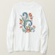 Rosemaling en camiseta azul y roja
