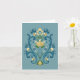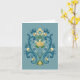 Rosemaling en tarjeta de saludo de oro y azul