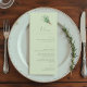 Elegante carta francesa de menú de campo con estribos de romero acuarelas atados a dos camas, en una suave paleta verde sabio. Ideal para bodas de otoño, primavera, verano o invierno con encanto rústico, botánico y moderno. Perfecto para celebraciones de temporada, vacacionales y de inspiración rústica.