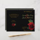 Roses Rojos en un sofisticado volante de programa de bodas de oro y negro en www.zazzle.co.uk/datesdujour. Este folleto del programa de bodas está diseñado para ser doblado a la mitad, haciendo así 4 páginas con los detalles de la Ceremonia Boda y la Fiesta de Bodas en el interior de las páginas 2 y 3. Comprar directamente para las mejores gangas.