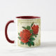 Diseño artístico victoriano de rosas de col roja sobre un fondo de encaje de color crema en un marco dorado. Elige el tamaño y los colores de la taza o agrega tu propio texto.