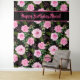 Hermosos Rosas de color rosa y un brillante patrón de vegetación sobre fondo negro, Actualizar los detalles de la tipografía de cumpleaños feliz del personalizable para hacerlo único y especial. Ideal como señal de bienvenida para tu evento, y también como un hermoso telón de fondo fotográfico. Todavía me veo increíble en tus medios sociales.