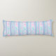 Una almohada de cuerpo de bonito o un cojín, con rayas rosadas, turquesas y blancas y rosas rosas rosas rosas. Este patrón, que forma parte de la colección "Días de verano" de Posh & Painterly, se puede ajustar fácilmente para que se ajuste a cualquier almohada o cojín.