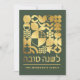 Tarjeta de Rosh Hashaná con patrón geométrico moderno y lámina dorada. Símbolos hebreos y de Rosh Hashaná + espacio para agregar un saludo personal en el frente y reverso. Deseos para el Año Nuevo judío. El texto hebreo en el frente y en el interior dice "L'shana Tovah". Un aspecto elegante, hermoso y actualizado es una excelente manera de desear a amigos, familiares y clientes un Shanah Tovah, un Año Nuevo judío feliz y dulce.