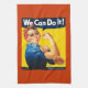 ¿Falta de la motivación para hacer los platos? ¿Necesitando un poder de la niña? Intente esta mirada retra Rosie la toalla de cocina temática del remachador para la inspiración. El diseño es un ilustracion del Rosie icónico el remachador, estrella de un poster americano WW2 del vintage, doblando sus músculos poderosos diciendo que "podemos hacerlo!" a sus americanos de la hermana, como ella impulsa a mujeres trabajar en fábricas para ayudar al esfuerzo de la guerra. El poster famoso del artista J Howard Miller muestra a Rosie vestido en sus guardapolvos azules de la marca registrada y pañuelo de los años 40 rojos y blancos del polkadot. Usted puede cambiar el color del fondo rojo al juego usando el botón del personalizar.