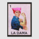 Icónica foto de Rosie, el riveter, en un gorra de coño rosado con la palabra RESIST tatuada en su antebrazo. Fondo mexicano rosa claro medio tono de color rosa vintage. ¡Diseño feminista para latinas! Un formato de arte de la carta de la lotería personalizado. Resistan a la corrupción en EEUU y luchan por los derechos y la democracia al norte y al sur de la frontera. ¡Podemos hacerlo!