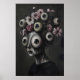 Rostro de mujer macabro ojo impresión de Halloween, ojo de flor espeluznante, arte surrealista de academia oscura, impresión gótica espeluznante, arte extraño gótico de bruja