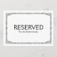 Sencillo y elegante estilo art deco blanco y negro "Reservado para la familia de la novia" signo boda, personalizado con su propio texto. Este cartel boda "Reservado a la familia de la novia" se ve muy bien impreso en un papel mate, si necesitas algo más tradicional, usa el Laid, el Linen o el Columned, para un ambiente rústico usa el papel artesanal, si quieres añadir un toque de glam, usa el Luxe. Al hacer clic en el botón "personalizar", puede acceder a la herramienta de edición y elegir un color de fondo diferente. Este es un signo de tarjeta plano impreso de 5" x 7", se verá realmente elegante en un marco de imagen.
