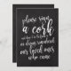 Un elegante y vanguardista signo boda, muestra el texto "Por favor, firme un corcho y déjelo caer en el marco para que siempre recordemos a nuestros seres queridos que vinieron" en un guión extrovertido, la textura del pincel agrega una sensación espontánea y lúdica. El color de fondo puede personalizarse según sus necesidades y preferencias, por favor contáctame si tienes alguna solicitud especial.