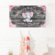 Rótulo de la pancarta de fondo de la mesa floral de elefante rosa