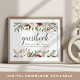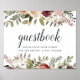 Diseñado para coincidir con nuestra colección de bodas Rustic Bloom, este elegante cartel botánico invita a los huéspedes bodas a firmar su libro de visitas. Personalice con dos líneas de texto personalizado en escritura caligráfica y letras serif tradicionales (que se muestran con "Guestbook; por favor deje sus deseos para el nuevo señor y señora. [nombre]"), enmarcado por flores y vegetación otoñales.