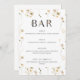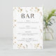 El moderno cartel boda de boho de su menú "bar" presenta un audaz estilo contemporáneo con delicadas flores silvestres en tonos suaves de rosa, amarillo, violeta, marfil y verde. Personalice con su menú de bebidas boda con la plantilla fácil de editar que incluye un tipo de letra romántico y un tipo de letra serif moderno. Consulte los elementos coincidentes en las colecciones "Bridal Showers" y "Watercolor Wildflower".