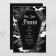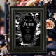 Abran el encanto con este elegante cartel de boda gótico boda, perfecto para un boda de Halloween. Este diseño moderno y elegante combina una estética boho-oscura con un ambiente espantoso y espeluznante, capturando la esencia de una celebración de octubre. Este cartel de bar, adornado con motivos de telaraña y murciélago, junto con delicados elementos florales, muestra una sorprendente paleta de colores en blanco y negro. Establezca el tono de su día especial con una mezcla única de belleza inolvidable y elegancia intemporal.