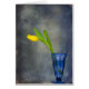 Un tulipán amarillo en vidrio azul.