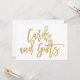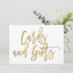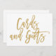 Rótulo Boda con mano de moda que dice "Tarjetas y regalos" en oro