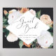 Diseñado para coincidir con nuestra colección de bodas Boho Blooms, este elegante cartel floral invita a los huéspedes bodas a firmar su libro de oro. "Libro de visitas" aparece en el guión de caligrafía con el texto de su personalizado; se muestra con "por favor comparta sus deseos para el nuevo Sr. y la Sra. [nombre]", enmarcado por un borde geométrico de flores de acuarela pastel y follaje botánico en tonos tierra inspirados en el desierto, de melocotón, verde salvia, blanco y marfil.