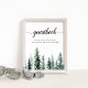 Diseñado para coincidir con nuestra colección de bodas Timber Grove, este rústico cartel de moda de bosques invita a los bodas a firmar su libro de visitas. Personalice con dos líneas de texto personalizado en escritura caligráfica y letras serif tradicionales (que se muestran con "Guestbook; por favor deje sus deseos para el nuevo señor y señora. [nombre]"), con un borde inferior de árboles de color agua verde perenne en cazador y verde forestal.