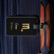 Elegante etiqueta de equipaje con signo de escorpión dorado sobre fondo negro.