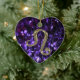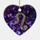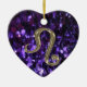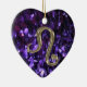 Rótulo Leo del zodiaco del oro en el ornamento púrpura del purpurina. Ornamento en forma de corazón astrológico colorido en púrpura chispeante con el símbolo astrológico del accesorio de oro metálico para Leo. Un gran regalo para su león preferido estas vacaciones.