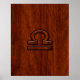 Símbolo libra zodiac sobre fondo de impresión de textura de diseño de grano de madera de caoba. Un moderno diseño de estilo rústico para una gran idea de regalo de cumpleaños personalizado. Utilice el vínculo "Preguntar a este diseñador" para contactarnos con sus solicitudes de diseño especiales o para obtener ayuda con sus necesidades de personalización.
