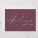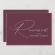 Signo moderno reservado con "Reservado" mostrado en un elegante guión de caligrafía blanca con fondo de color púrpura de vino o color personalizado. Personalice el signo reservado del guión con el texto de su personalizado (actualmente mostrado con "Familia de Groom"). El diseño se repite en la parte posterior del cartel. Utilice el cartel de boda morado para reservar sillas o mesas en su ceremonia boda, recepción, cena de ensayo u otros eventos especiales.