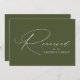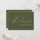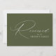Signo moderno reservado con "Reservado" expuesto en un elegante guión de caligrafía blanca con un fondo verde oliva o color personalizado. Personalice el signo reservado del guión con el texto de su personalizado (actualmente mostrado con "Familia de Groom"). El diseño se repite en la parte posterior del cartel. Utilice el cartel de boda verde oliva para reservar sillas o mesas en su ceremonia boda, recepción, cena de ensayo u otros eventos especiales.