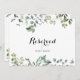 Este signo reservado de boda de delicias foliares de eucalipto es perfecto para un boda simple. El diseño presenta un eucalipto elegante de acuarela botánica, de inspiración natural. Estas tarjetas son de doble cara y se pueden utilizar para reservar sillas o mesas en la ceremonia de boda, recepción o cualquier evento.