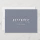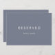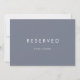 Este sencillo cartel de pizarra azul gris reservado es perfecto para un boda moderno. El diseño de boho mínimo incluye texto blanco clásico sobre un fondo gris azulado de pizarra. Utilice estas tarjetas para reservar sillas o mesas en su ceremonia boda, recepción o cualquier evento.