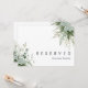 Diseñamos este letrero reservado para la vegetación y la hoja de oro para completar su boda boho simple y elegante. Cuenta con una hoja de eucalipto blanca y verde moderna, un follaje de helecho, una flor suculenta y hojas de Relieve metalizado de oro mínimas. Estos elementos le dan un aspecto de un bosque de acuarela de colores brillantes, perfecto para cualquier boda rústico bohemio. Siéntete libre de personalizares y hazlo tú mismo; también, siéntete libre de mirar por el resto de la colección para encontrar productos a juego y coordinados.