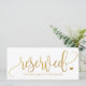 Rótulo reservado para Bodas de caligrafía rústica (Relieve metalizado dorado falso): Cuelga este cartel de caligrafía rústica reservado con una cinta de bonito en las sillas o apuntala sobre las mesas en la recepción. El diseño está ajustado en un Relieve metalizado de oro falso, pero si desea un color plano, simplemente haga clic en "Personalizar más lejos" y desactive la imagen de Relieve metalizado haciendo clic en el icono de ojo que hay junto a ella.