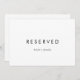 Este letrero reservado a la tipografía de moda es perfecto para un boda moderno. La tarjeta tiene doble cara (impresiones en ambos lados). El diseño es sencillo y presenta una tipografía minimalista clásica en blanco y negro con un toque rústico de boho. Personalizable de cualquier color. Mantenga el diseño minimalista y elegante, tal como está, o lo personalice añadiendo sus propios gráficos y obras de arte. Utilice estas tarjetas para reservar sillas o mesas en su ceremonia boda, recepción o cualquier evento.