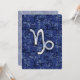 Un símbolo de zodiaco cromado plateado como Capricorn sobre un fondo de impresión de textura de diseño de estilo azul marino. Un moderno diseño de racia urbana para una gran idea de regalo de cumpleaños personalizado.