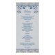 Esta romántica carta de boda floral azul real y gris plateado tiene la imagen de un par de corazones unidos sobre una cinta azul real y una imagen de arco que cruza el ancho de la tarjeta. En la parte superior e inferior del menú hay un borde simulado de plata con un área de texto azul real en la parte delantera que lleva los nombres de la novia y el novio, y el boda en gris debajo de la cinta, con "Our Boda Menu" en gris sobre la cinta. La parte trasera es gris con flores reales azules, arqueadas sobre los detalles de la carta en azul. Si necesita algún elemento adicional coincidente, envíe su solicitud a niteowlstudio@gmail.com o utilice la función de chat Zazzle para ponerse en contacto.