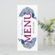 Royal Blue Peacock Wedding Flat Menu. You can personalize this menu with the names and the date of the event. You also can change background color, fonts, font colors and the images if needed, just click on "Edit using design tool".