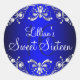Royal Blue Silver Pearl Damask Sweet 16 Pegatina