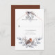 Un rústico marco geométrico a la moda con botánicos de invierno plateados, grises y oxidados con un pájaro colorido de los mismos colores en el fondo. La parte trasera de la tarjeta está oxidada. Personalice fácilmente con su propia información.