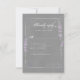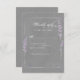 Tarjeta de respuesta boda Rsvp con flores de lavanda morada de color agua sobre fondo gris.