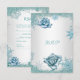 RSVP Boda Elegante Brillo Azul Teal Rosas Blancas